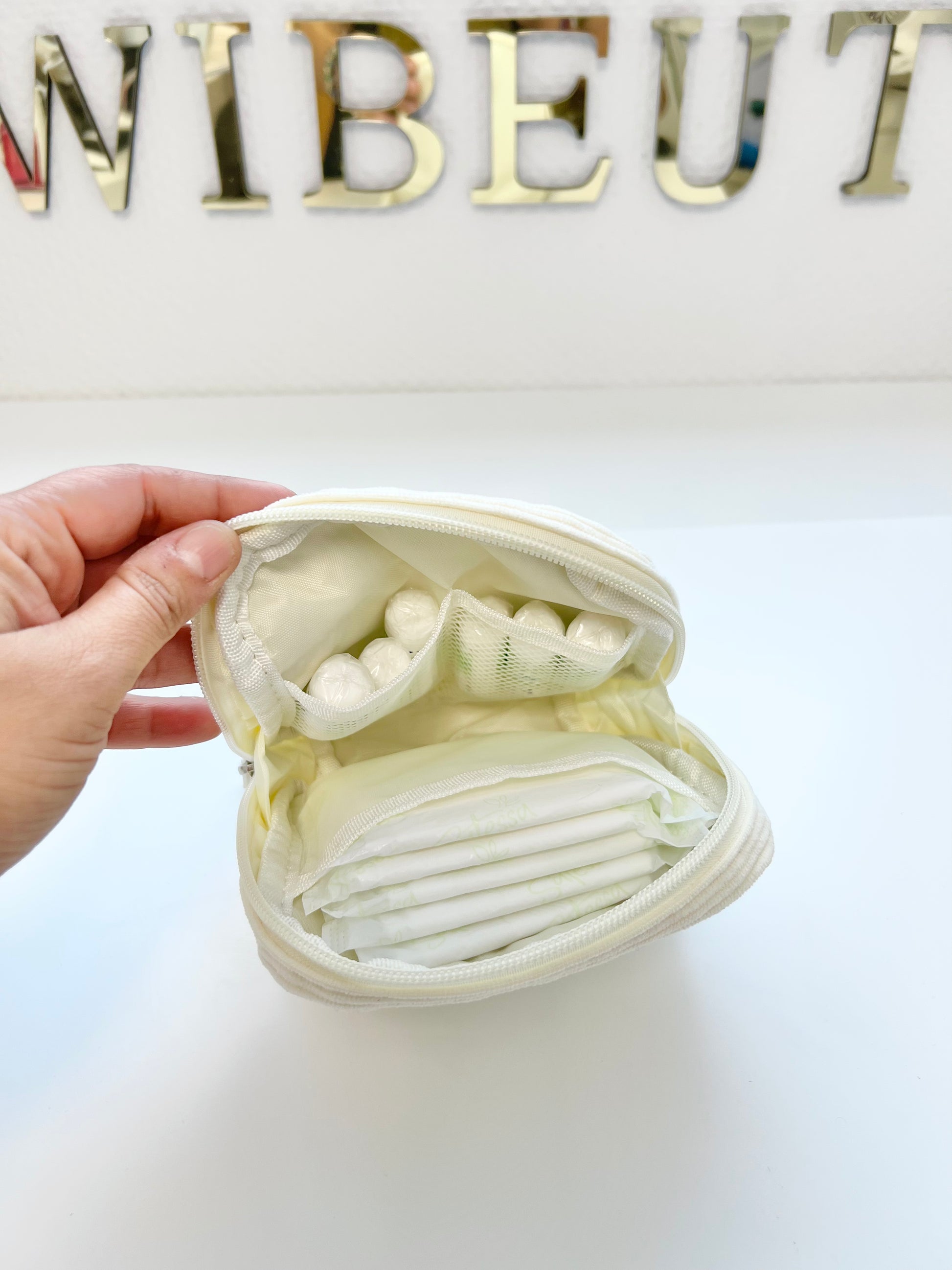 Diese kompakte Damen Hygiene Tasche ist der perfekte Begleiter für unterwegs. Sie bietet genügend Platz für Binden, Tampons, Slipeinlagen und andere Hygieneartikel, die du jederzeit griffbereit und diskret aufbewahren möchtest.
